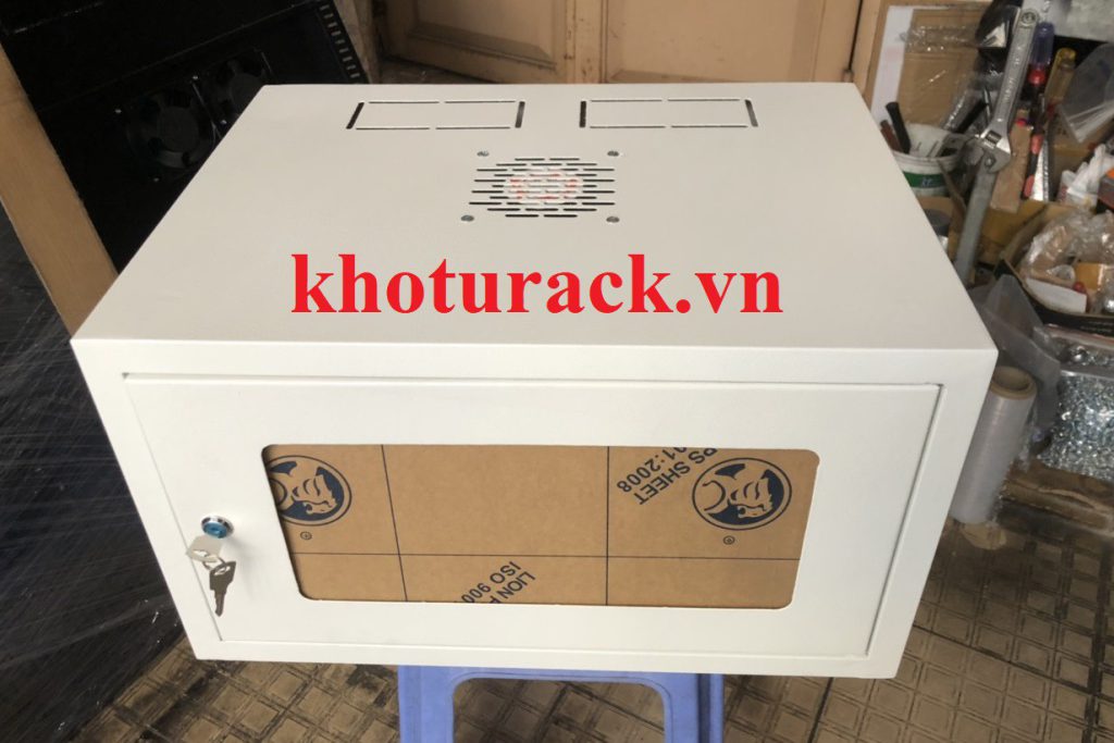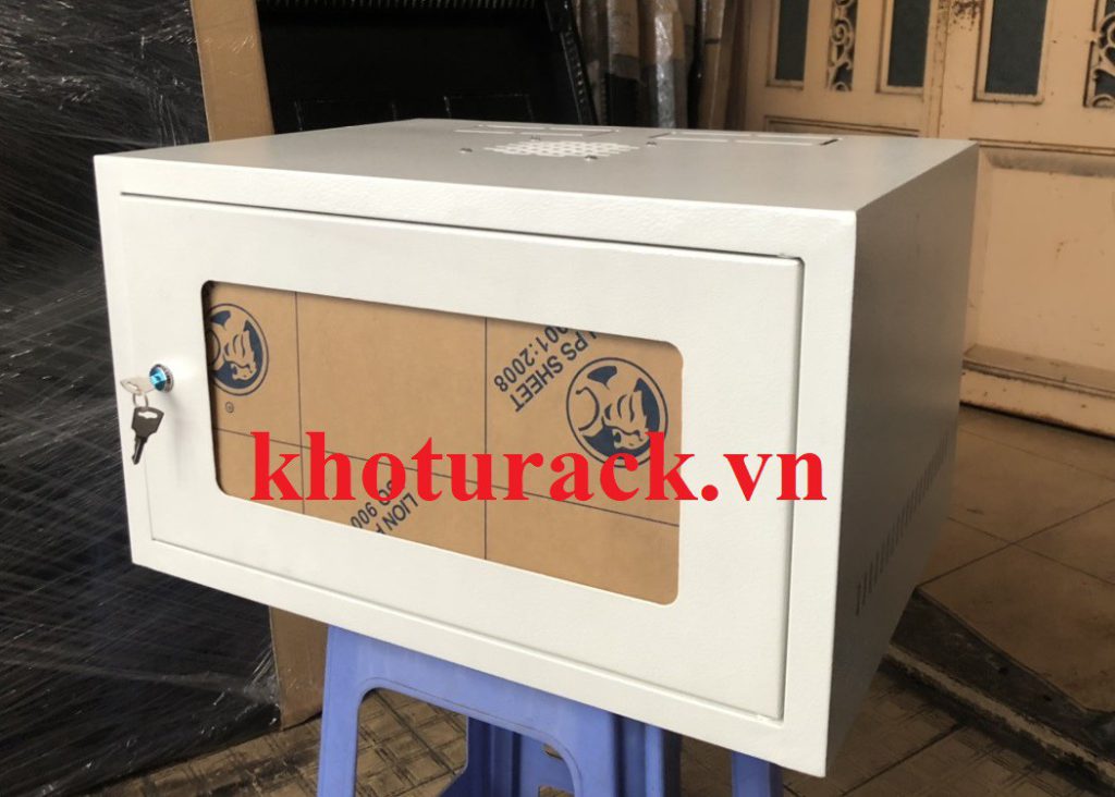 Tủ rack 6U-D400 treo tường, màu trắng, Cánh mica